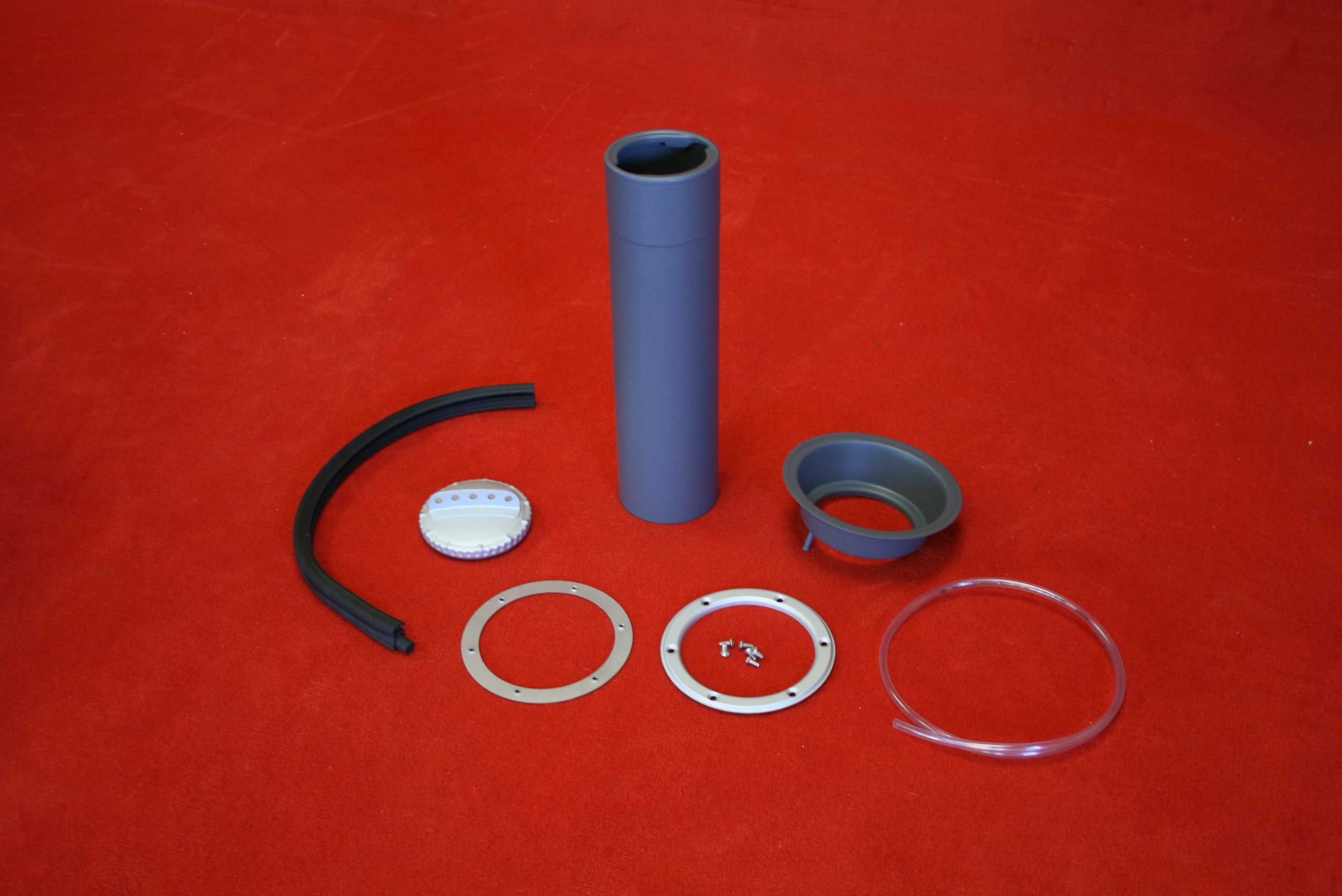 The tube has a diameter of 104 mm. With silver painted aluminum tank cap (Blau).