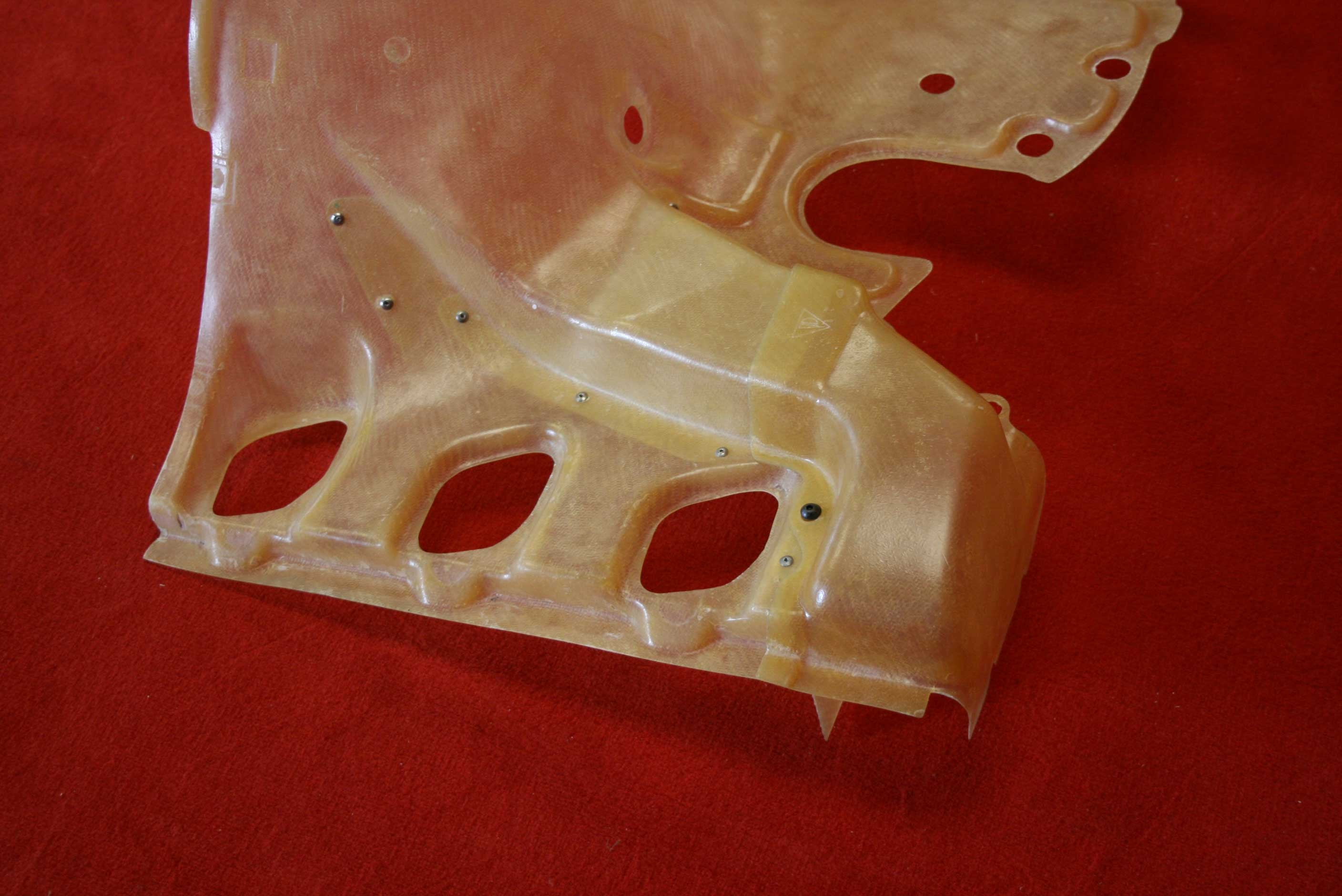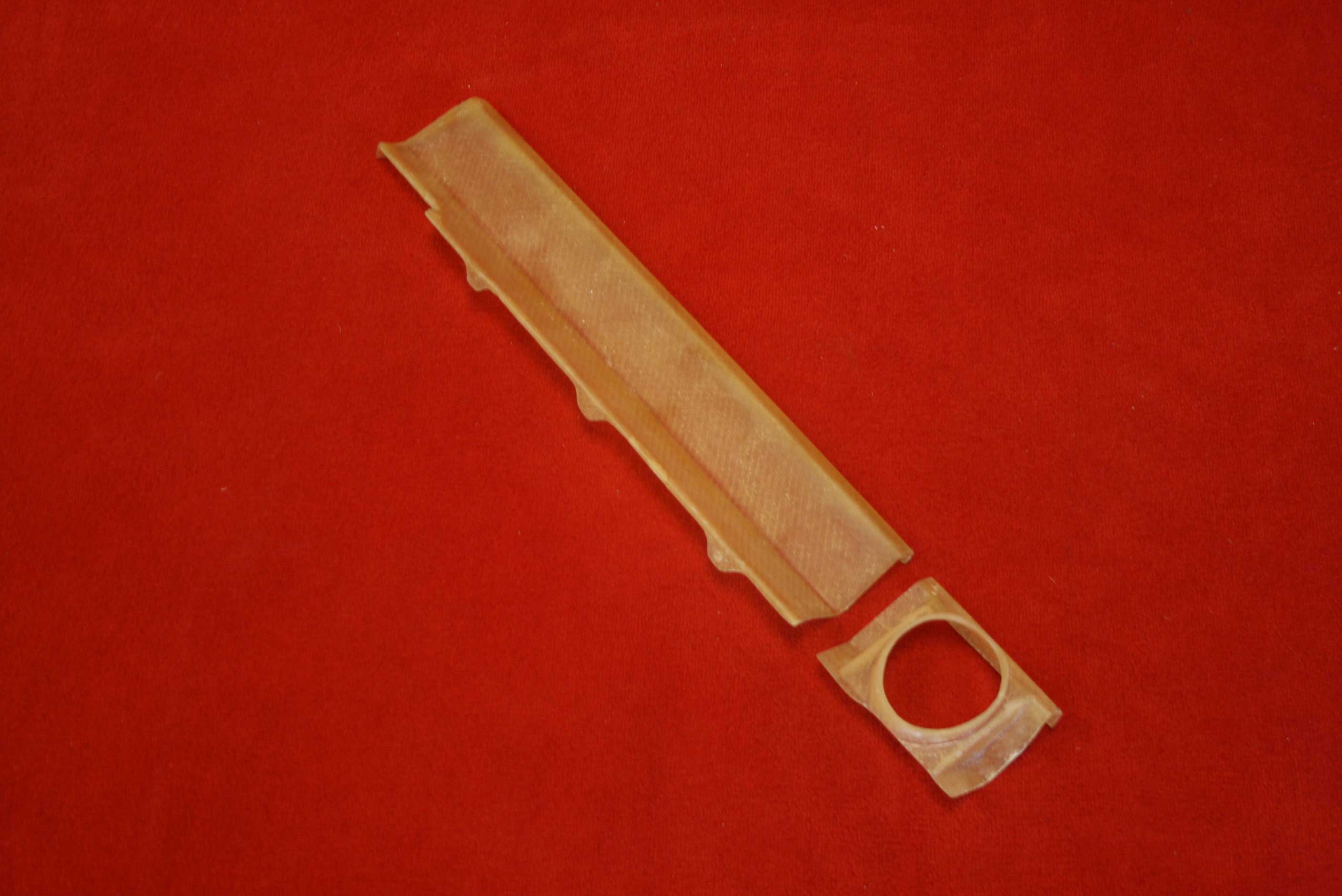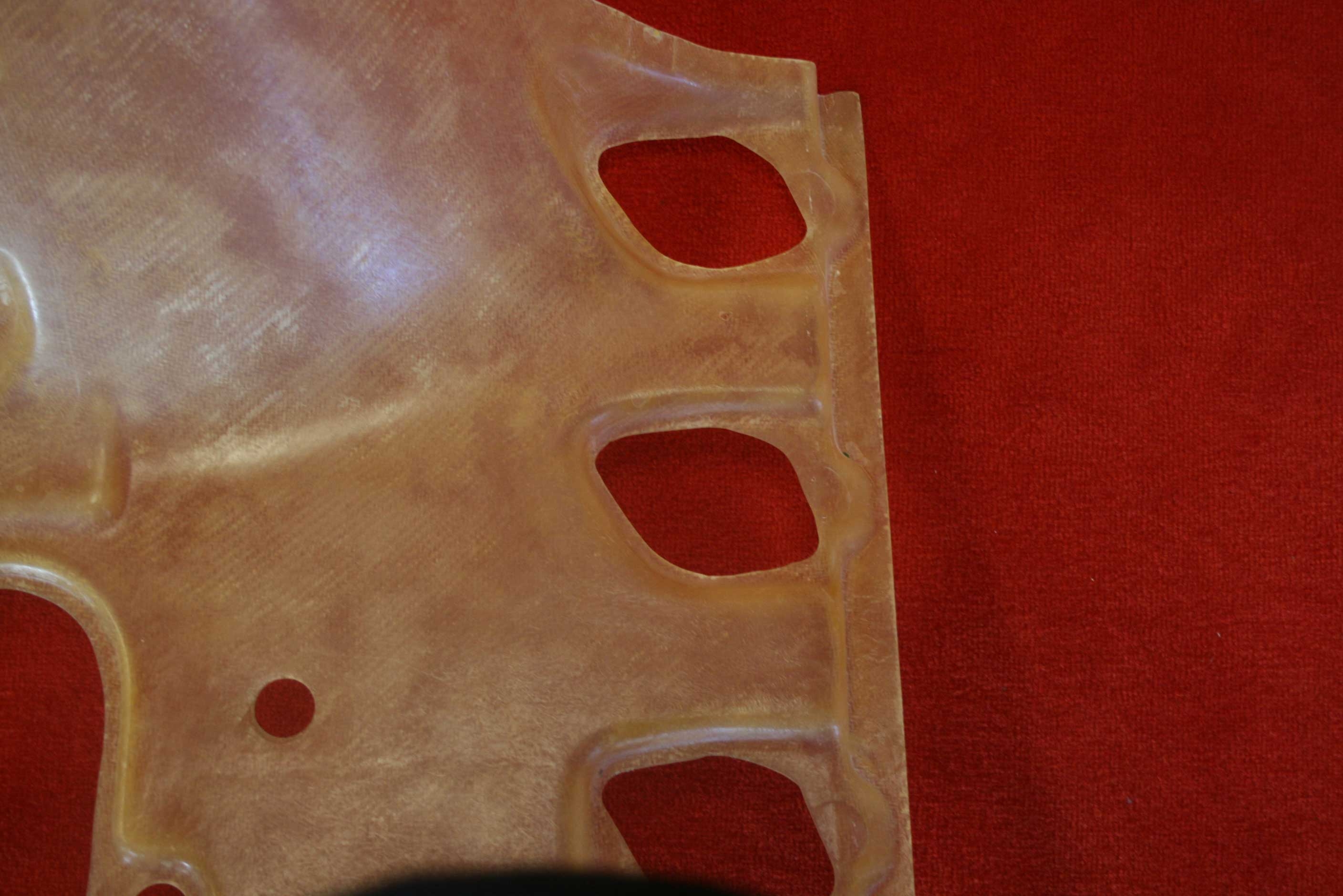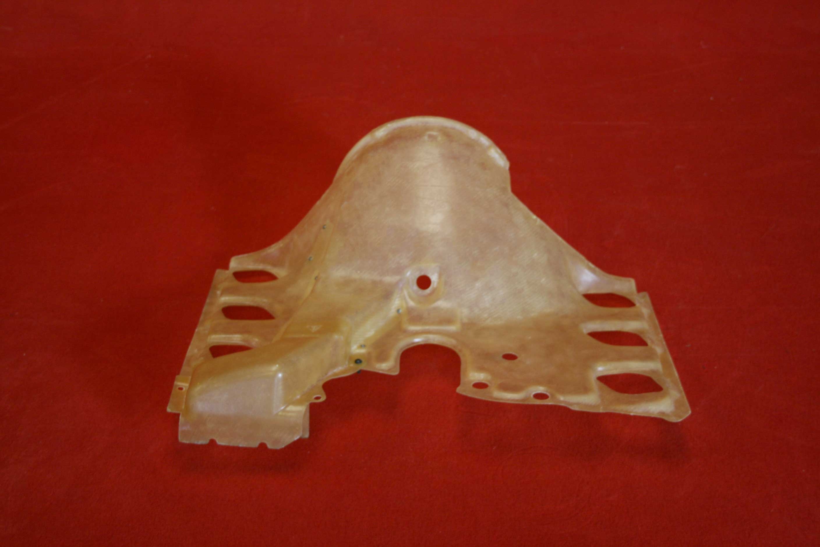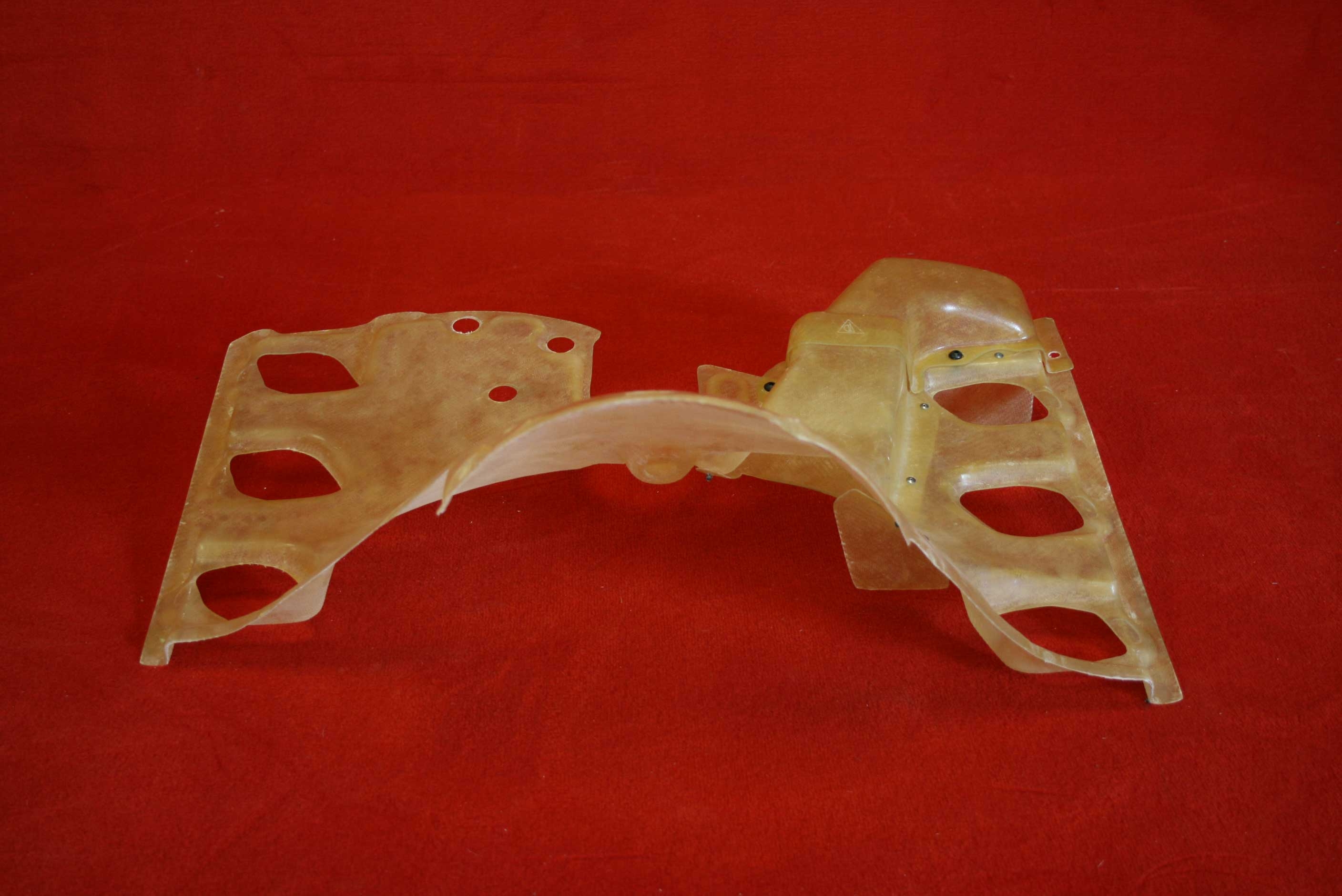 Alle Bauteile sind in einer durchsichtigen Sichtgewebe Optik mit einem hongig-/bernsteinfarbenem Spezialharz hergestellt um eine größtmögliche authentische und klassische Rennmotoren-Optik der sechziger und siebziger Jahre wiederzugeben.